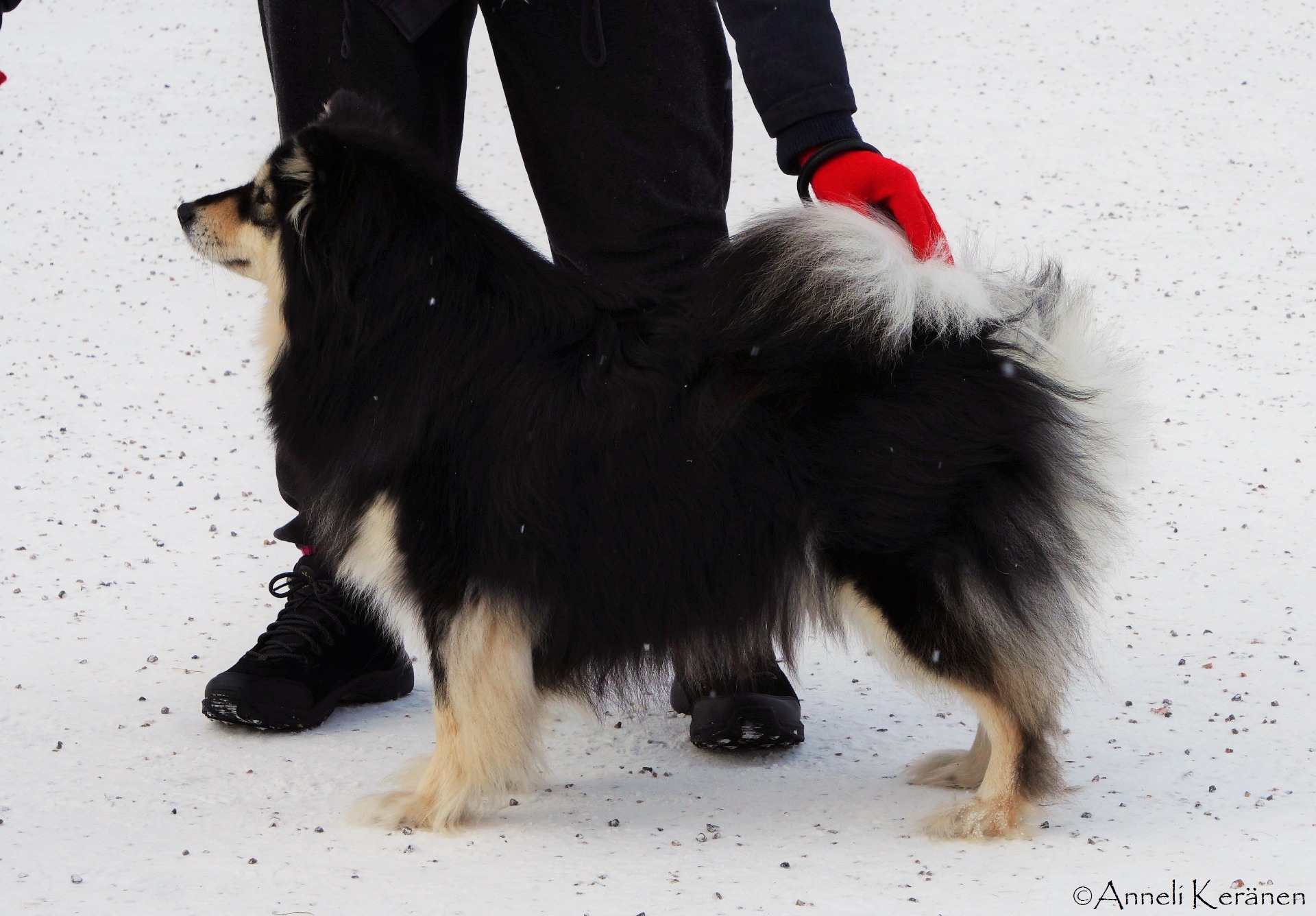 Musta merkein. Keskikokoa hieman pienempi. Mittasuhteiltaan oikea. Sirohko pää. Kauttaaltaan erinomainen rakenne. Tuuhea turkki. Hyvä luonne ja liike.